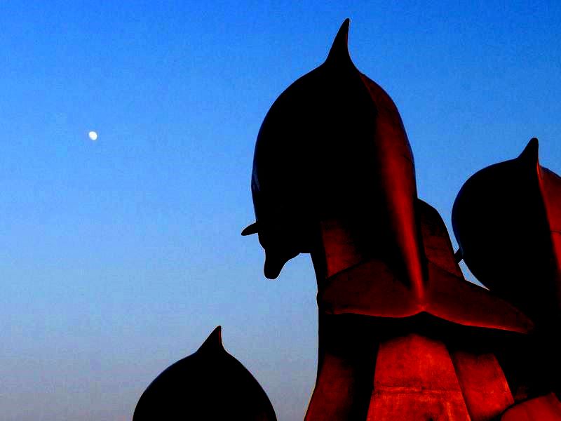 正當大部份blog友都埋首於一片搬遷嘅混亂紛擾中..佳節將至..黃昏時份..望見天上的咸蛋黃..同一時間..廣場上的幾條海豚..亦向著天上另一邊初上明月..中秋豚圓..十分應景..在此也祝大家人月兩圓..事事稱心..中秋節快樂..
